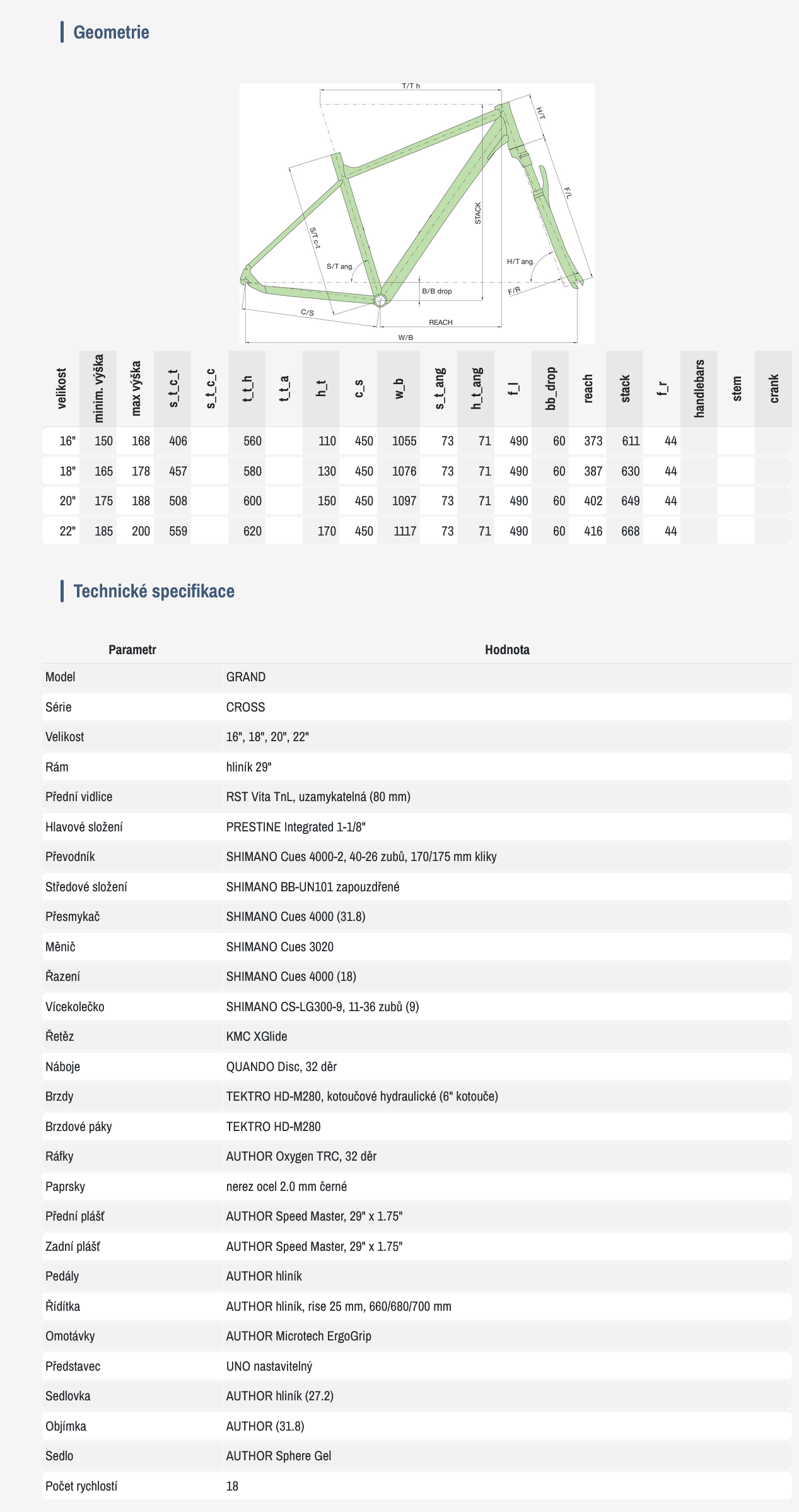 AUTHOR Grand je základní krosové kolo navržené pro pohodovou každodenní jízdu. Díky jednoduché konstrukci, spolehlivé výbavě a přehlednému ovládání nabízí ideální řešení pro cyklostezky, dojíždění i nenáročné výlety.