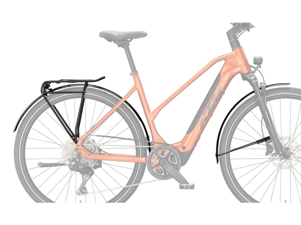 Sada nosičů blatníků KTM LFC (Light Fender Carrier) – perfektní kompletní řešení pro každodenní použití a cestování. Speciálně navrženo pro modely rámů T-4100 a T-4410. Sada obsahuje robustní blatníky SKS o šířce 55 mm (přední i zadní) včetně vzpěr, lehký zadní nosič KTM CARRIER ONROAD LIGHT 42 RT2.0 (28 palců), kompatibilní se systémy Snapit 2.0 a Monkeyload. Integrované zadní světlo Litemove TS-RK a odrazka RF2 zajišťují vynikající viditelnost. Součástí balení je kompletní montážní sada pro rychlou a snadnou instalaci.
