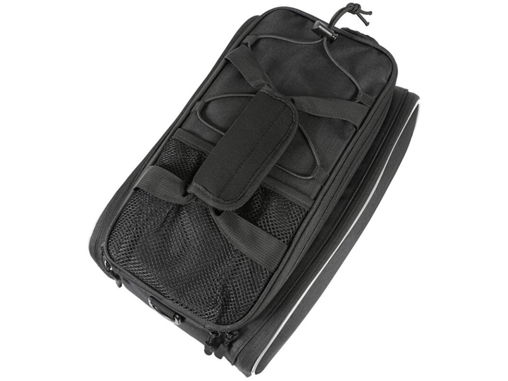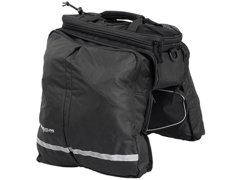 - víceúčelová brašna na nosič s nastavitelným objemem (rozepnutím horního zipu)