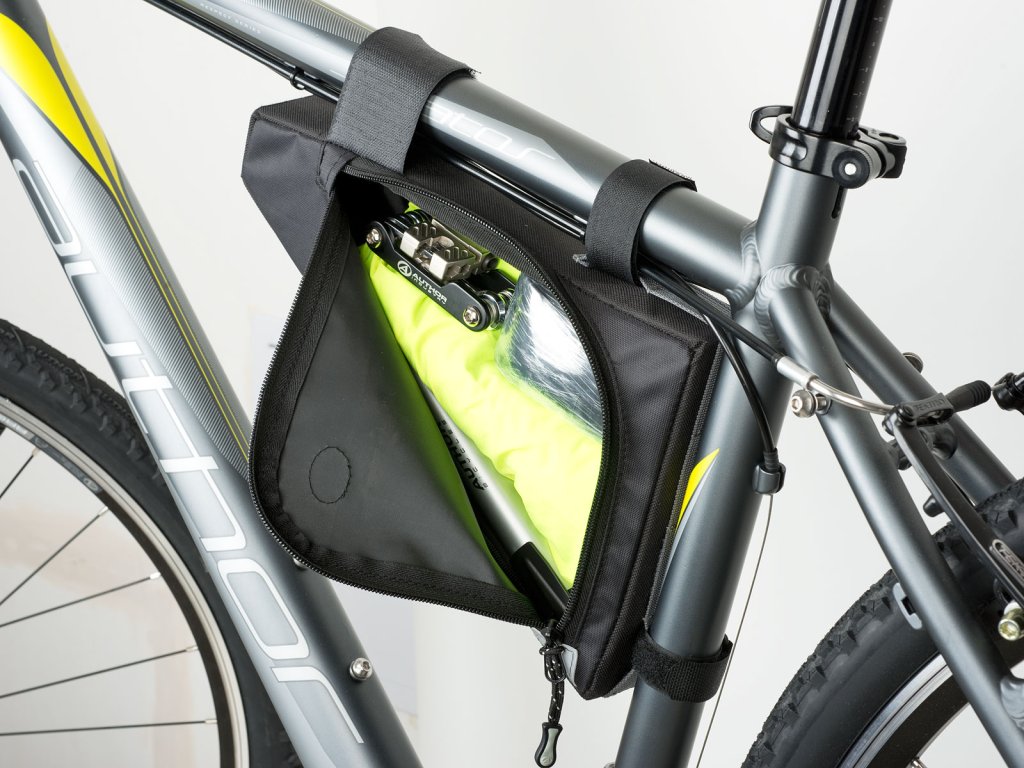 Brašna do rámu Author A-R244 je universální brašna s 1 hlavní kapsou a 1 plochou kapsou. Navržena s důrazem na dlouhou životnost a spokojené používání.Jednoduché a pevné uchycení suchým zipem. Samostatná plochá kapsa na zip pro doklady, telefon, peněženku, atd. Kryty jezdců zipů v zapnuté poloze. Reflexní doplňky. Hmotnost: 130 g Rozměry: 280 x 180 x 55 mm Objem: 1,5 l Materiál: Polyester 420D PU zátěr