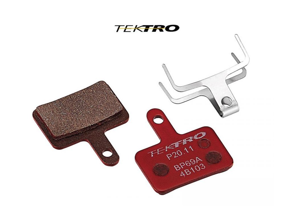 Brzdové destičky pro kotoučovou brzdu TEKTRO Orion, Auriga Pro, TRP HY/DR, Spyre, semi-metalické (tvrdší) směs metal-ceramic, v balení také pružinka.