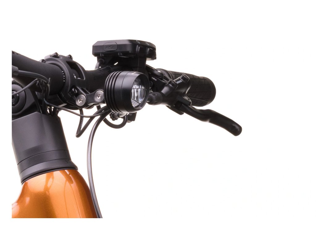 Přední světlo SUPERNOVA MINI 3 PRO je kompaktní, výkonné a technologicky vyspělé osvětlení. Díky moderní optice Terraflux 5 a světelnému senzoru se automaticky přepíná mezi denním režimem a tlumeným světlem podle okolních světelných podmínek – bez nutnosti zásahu jezdce. Denní režim s výrazným světelným podpisem zvyšuje viditelnost elektrokola za jasného dne, zatímco tlumené světlo nabízí výkon 500 lm a 125 lx pro bezpečnou jízdu po setmění. Celé tělo světla je vyrobeno z eloxovaného hliníku, který zajišťuje efektivní chlazení a dlouhou životnost i při intenzivním používání. Díky extrémně kompaktním rozměrům se MINI 3 PRO dokonale začlení do kokpitu elektrokola.