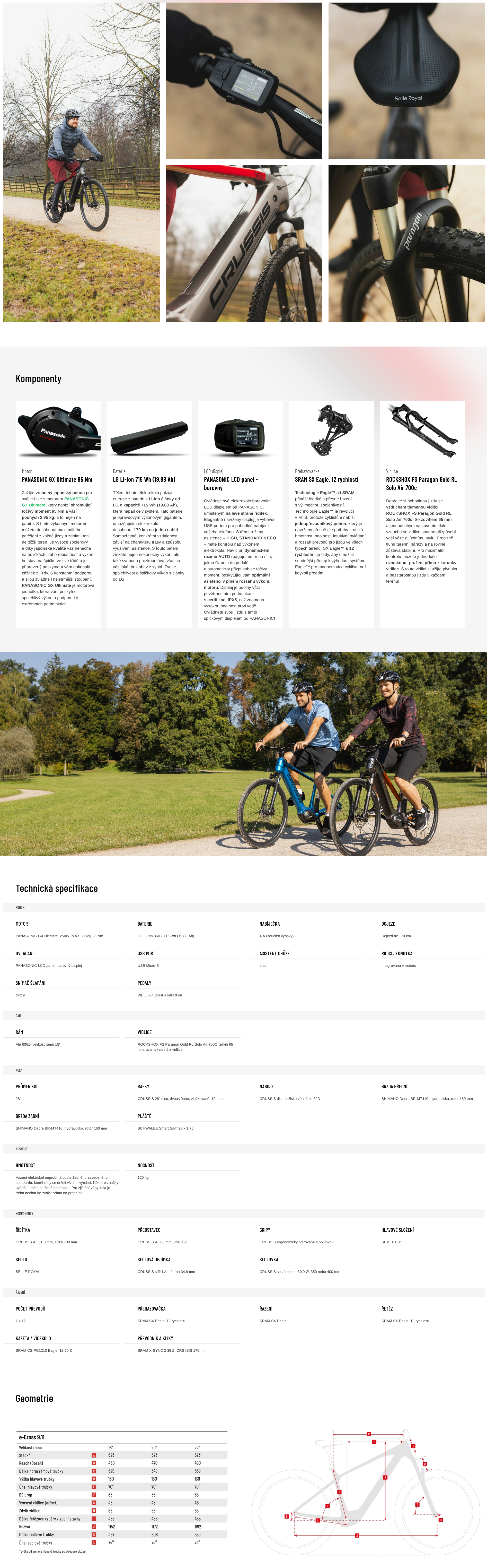 Crussis e-Cross 9.11 je sportovně laděné krosové elektrokolo pro jezdce, kteří chtějí svižnou jízdu na cyklostezkách i lehkém terénu. Silný motor Panasonic GX Ultimate, integrovaná baterie 20Ah s dlouhým dojezdem a vzduchová vidlice ti dodají jistotu v kopcích i na delších trasách. Lehce agresivní geometrie, čistý design a kvalitní osazení dělají z e-Crossu 9.11 ideální volbu pro aktivní jezdce, kteří chtějí univerzální e‑bike bez kompromisů.