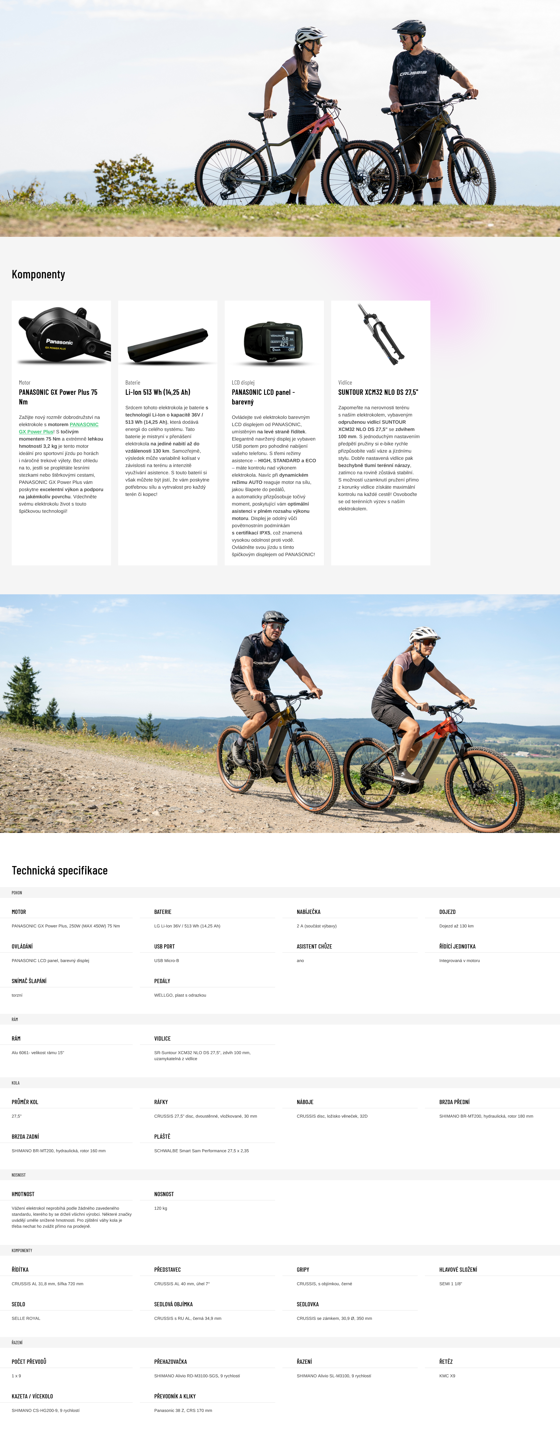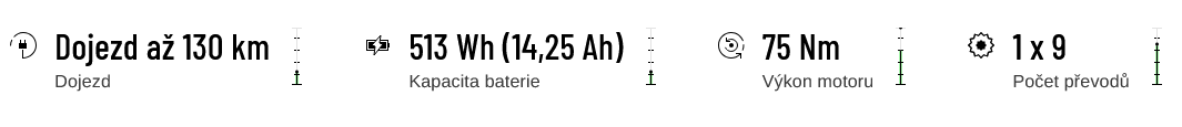 O spolehlivou podporu při stoupání i delších výletech se postará motor PANASONIC GX Power Plus s točivým momentem 75 Nm, napájený baterií LG Li-Ion 513 Wh (14,25 Ah). Dojezd až 130 km na jedno nabití vám umožní objevovat lesní traily i kopcovité krajiny bez obav z vybití.