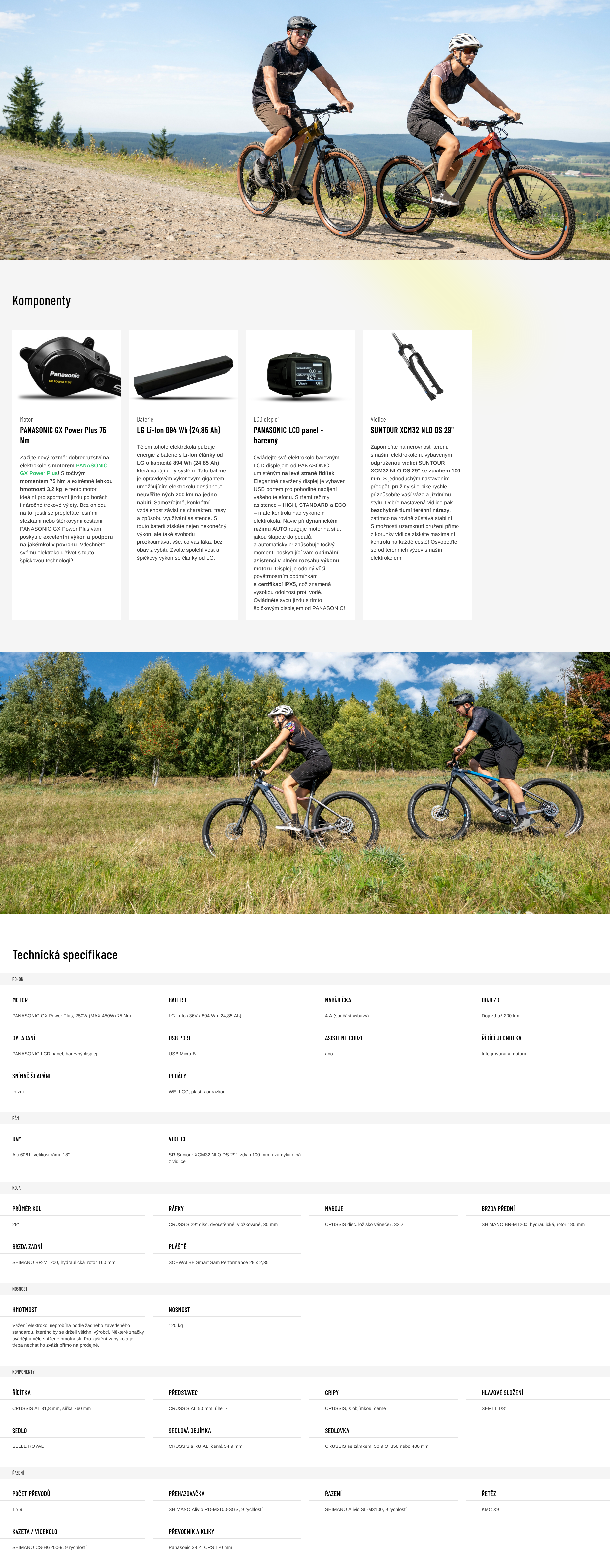 | Přední vidlice: | SR-Suntour XCM32 NLO DS 29", zdvih 100 mm, uzamykatelná z vidlice |