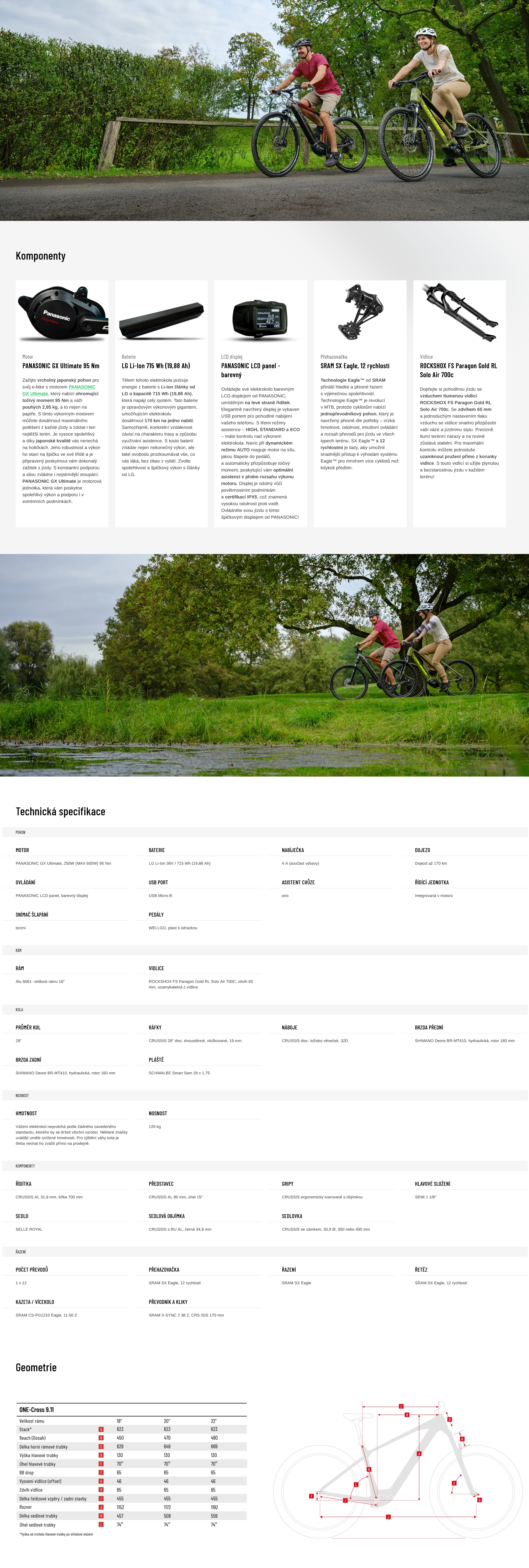 Crussis ONE‑Cross 9.11 je sportovní krosové elektrokolo pro jezdce, kteří chtějí rychlost na asfaltu a jistotu v lehkém terénu. Špičkový motor Panasonic GX Ultimate (95 Nm) žene kolo kupředu i v prudkých stoupáních, zatímco integrovaná baterie 720 Wh poskytuje dlouhý dojezd na celodenní výlety. Lehký rám, vzduchová vidlice a kvalitní komponenty dělají z ONE‑Crossu 9.11 ideální volbu pro aktivní jezdce, kteří chtějí univerzální e‑bike bez kompromisů.