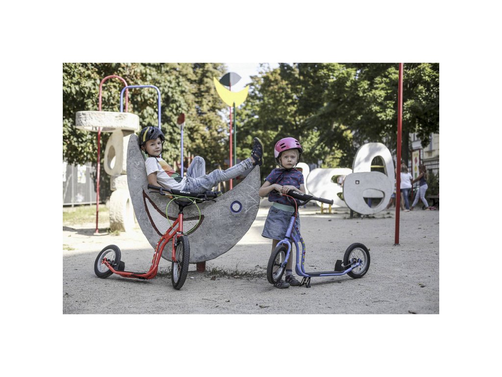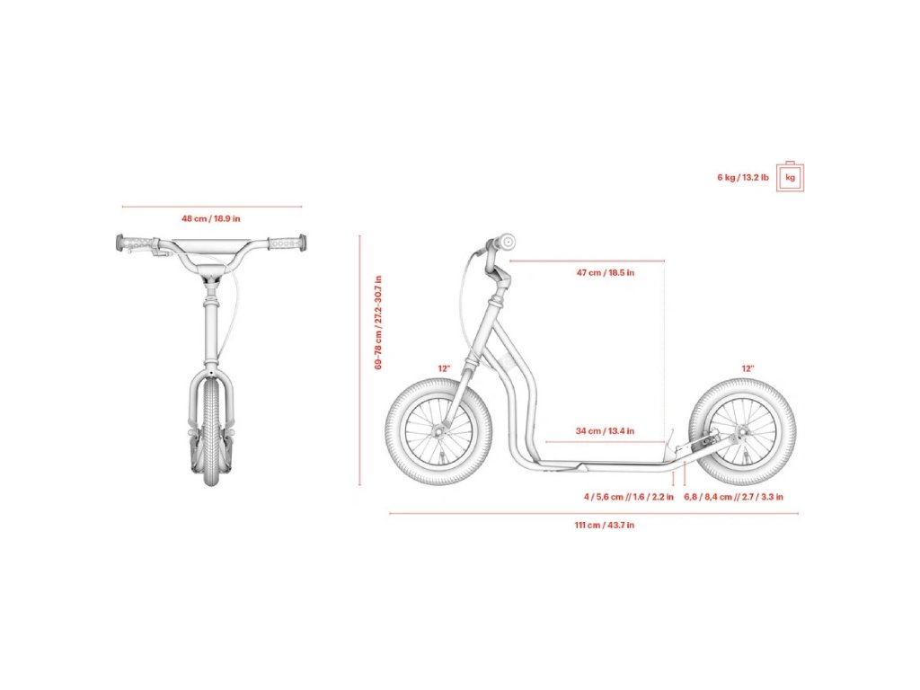 Náš vstupní model, nejlehčí a nejmenší koloběžka, toho zvládne za den pozoruhodně hodně. ☀️ a samozřejmě devatero modrých hor. Naplní představy začínajících jezdců a jezdkyň všemi barvami a rozptýlí rodičů – ideální výškou stupátka pro hladkou jízdu začátečníků, správně nafouknutými koly s ložisky a množstvím bezpečnostních prvků: protiskluzové stupátko, madla s ochrannými konci, spousta reflexních prvků, kvalitní V brzda… Na konci pak