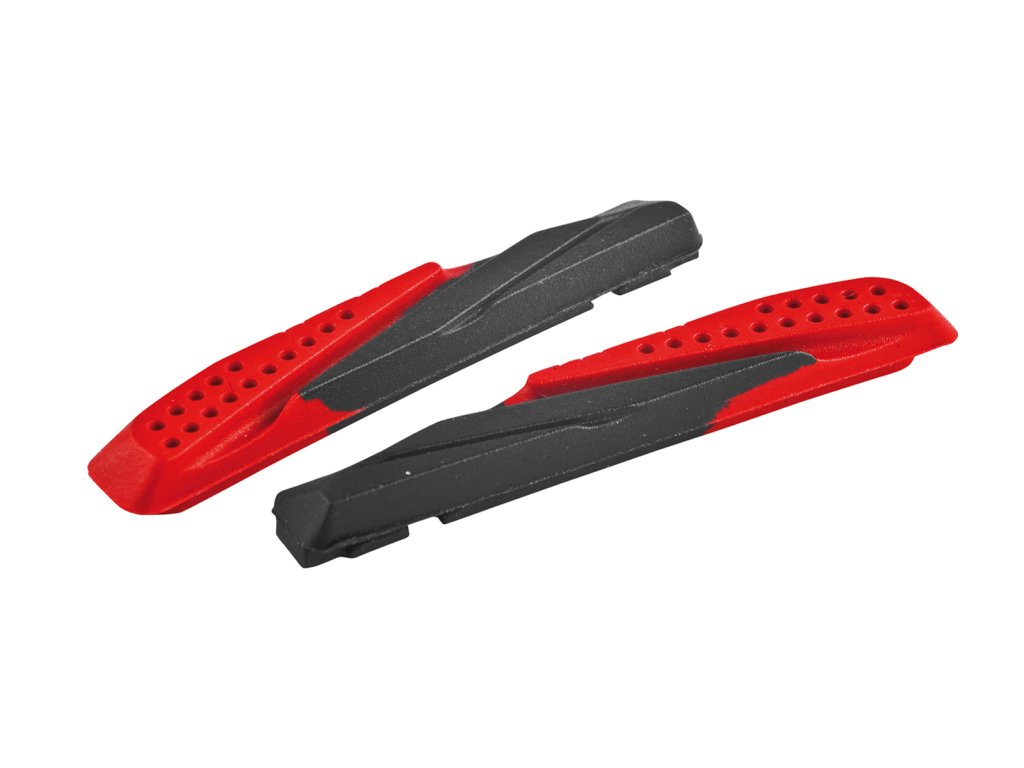 Pro V-brzdy MTB, Trekking (Cross). Náhradní gumky pro DUALSTOP V-01. DUALSTOP technologie - pro vysokou účinnost ve všech podmínkách: červená směs má vynikající brzdné vlastnosti za sucha / černá směs brzdí za mokra. Samočistící profil - speciálně tvarovaný profil gumičiek odvádí vlhkost a stírá nečistoty z ráfku čímž zabezpečuje plynulé brzdění. Nerezonují - drobné perforace zajišťují brzdění bez nepříjemných zvuků. Délka 72 mm.