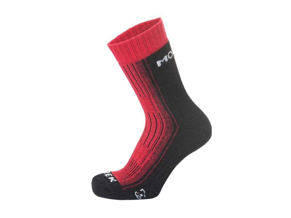 Ponožky pro turistiku Trek mají celý vnitřní povrch pokrytý smyčkou. Na spodní straně ponožky a nad patou až k lemu je smyčka hustější, nárt a část pod lemem je pletenina řidší a tomu odpovídá i vazba smyček. Vnitřní smyčky zajišťují dokonalý odvod vlhkosti při zachování dobré termoregulace nohy, zabraňují otlakům a vymezují nohu v botě. Špička a pata jsou materiálově zesíleny. Od špičky až k lemu ponožky jsou po stranách ponožky pružné zpevňovací pásy, oddělující spodní část od nártové části ponožky. Nárt až k horní části ponožky je vyplněn pružným, vzdušným úpletem, který umožňuje dobré odvětrávání přijaté vlhkosti. Přes nárt a chodidlo, a nad kotníkem je elastická bandáž zabraňující posunu ponožky v botě. Ponožka je ukončena nízkým pružným lemem s měkce přiléhavým svěrem.