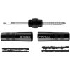 Tato kompaktní sada o délce 80 mm a hmotnosti pouhých 44 g vám umožní rychlou nezbytnou opravu bezdušových plášťů pro přejezd na pořádný servis.