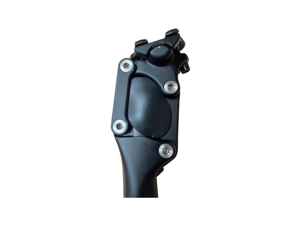 Tvrdost lze nastavit šroubem na spodu sedlovky, kterým se nastaví tvrdost pružiny