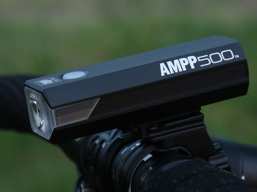 Přední dobíjecí výkonné (500lm) světlo CATEYE AMPP500 s technologií OptiCube (speciální konstrukce optických čoček usměrňující tok světla pro lepší osvícení vozovky). Indikátor kapacity akumulátoru a dobíjení integrovaný do vypínače. Součásti světla je USB 2.0 / Micro-B kabel.