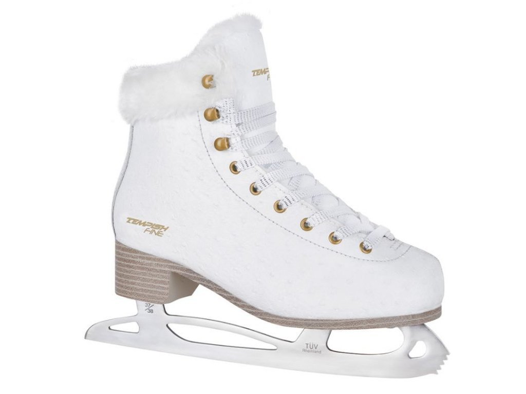 Dámské lední brusle FINE klasické konstrukce pro rekreační, sportovní i výkonnostní bruslení. Bota brusle je vyrobena z odolného PVC, které má zajímavou povrchovou úpravu s plastickým reliefem. Vnější i vnitřní kožíšek na botě je velmi příjemný na dotek a předeším se postará o tepelný komfort, kdy udrží teplo v botě i za snížených teplot a delším pobytu na kluzišti, nebo přírodním ledu. Vnitřní anatomicky tvarovaná bandáž s pamětí na bázi latexu DB 120 fixuje pevně chodidlo v botě a přenáší bezchybně pohyb z chodidla na brusli. Anatomicky tvarovaná skořepina boty v oblasti kotníku se velmi příznivě projevuje při pohodlném ovládání brusle a díky ní můžete strávit na ledu dlouhé hodiny a kotníky budou "jako v bavlnce". Na této brusli je použit zcela nový design nože TEMPISH WAVE, který je z nerezové oceli a leštěný.